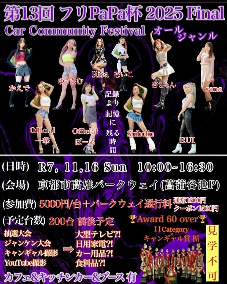 ⇒一般道を走行出来ない様な過度改造車は参加出来ません。